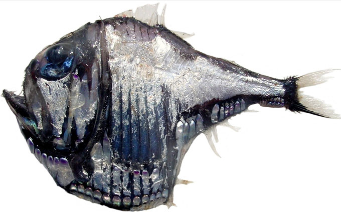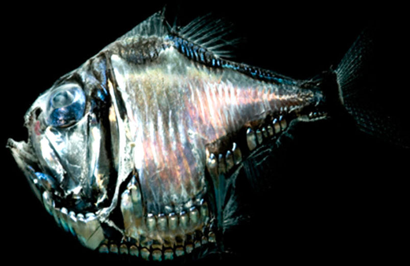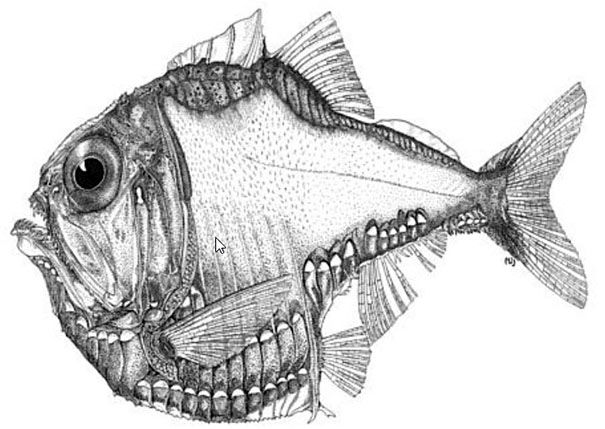 | Cuerpo comprimido lateralmente, profundo; ojo tubular dirigido dorsalmente Boca vertical; dientes caniniformes agrandados en la mandíbula inferior Aleta dorsal con 9 radios seguida de una aleta adiposa. Aletas pectorales 9-10 radios; pélvica con 6; aletas anales 7 + 5. Fotóforos ( adulto ): ORB 1, pigmentado, dirigido hacia el cristalino; BR (6); OP 3; OP3 primero en desarrollarse; PI (6); PV (12); VAV (4); ACI (6); AC2 (4); OA (2) + 6; Los grupos VAV, ACI y AC2 están bien separados, los fotóforos de cada uno comparten un fotogénico común; VAV, ACI y AC2 elevados en relación con 6 OA posterior Color: dorso oscuro, flancos plateados; triángulo de pigmento oscuro en la base del lóbulo caudal ventral (peces de más de 20 mm SL); marcada extensión del pigmento al borde de la quilla ventral |