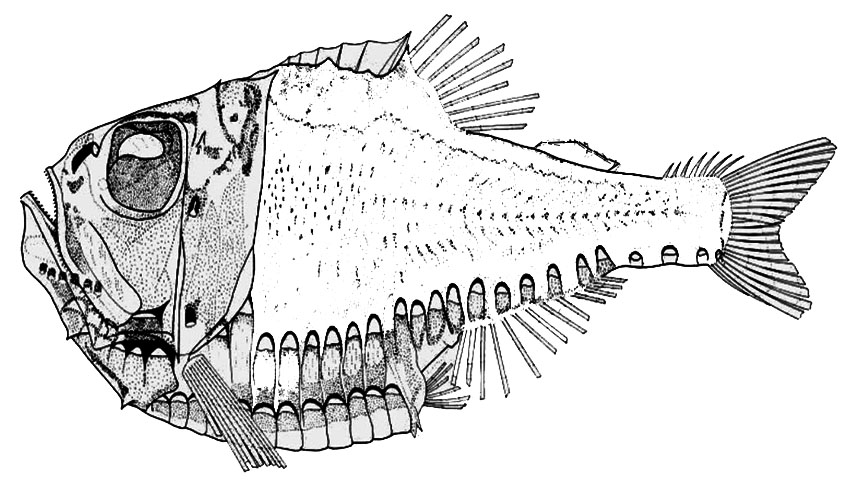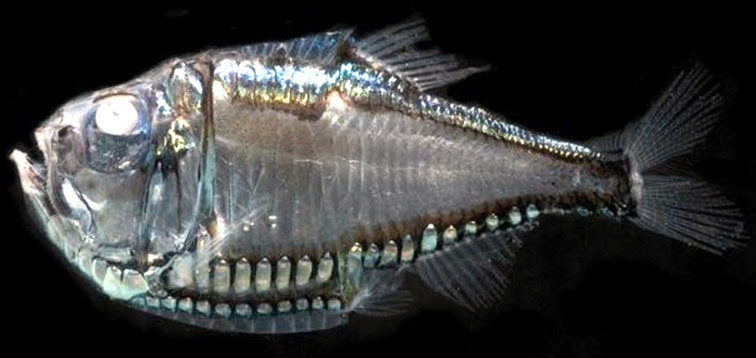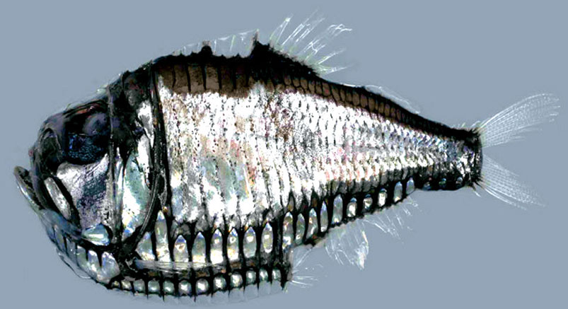 | Cuerpo comprimido lateralmente, perfil profundo con elevación carnosa entre la tercera y cuarta espina dorsal Perfil del hocico angular ; ojo tubular , dirigido dorsalmente; boca vertical Aleta dorsal 9- 10 seguida de una aleta adiposa; aletas pectorales 10 (11) radios; aleta pélvica 6; anal 13. Espina preopercular superior corta Espinas postabdominales cortas, iguales Fotóforos en configuración inicial: BR (6); PI (6); PV (4) + (2) + (2) + (4); VAV (2) + (2); AC1 (1) + (3) + (2) AC2 (1) + (3). Color: dorso oscuro, flancos plateados |