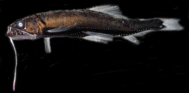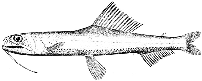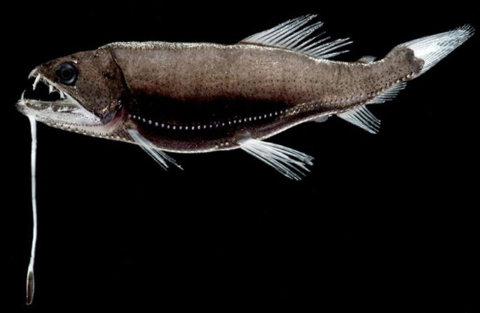 | Radios dorsales: 15-17; Radios anales: 16 - 19. Los dientes maxilares tienen forma de peine, están poco espaciados. Los fotóforos en serie no se dividen en grupos pequeños. Faltan manchas luminosas en la parte superior de la cabeza y el cuerpo. fotóforos seriados en fila lateral (OA) 42-48, de los cuales 25-29 detrás de la inserción de la aleta pélvica (VAL); 62-70 fotóforos en fila ventral a cola (IC); fila ventral que se curva ligeramente hacia afuera entre las bases de las aletas pectorales. Barbillón más largo que la cabeza con la punta hinchada de color negro. Cuerpo negro |