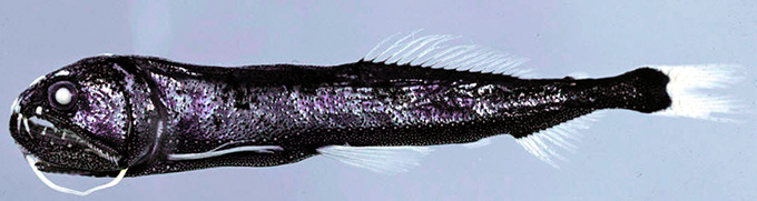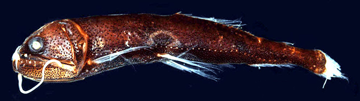 | Cuerpo moderadamente alargado y delgado, dientes maxilares en forma de peine dorsal Fotóforos seriados en fila lateral (OA) 30-37, de los cuales 17-23 detrás de la inserción de la aleta pélvica (VAL); 50 56 fotóforos en fila ventral a cola (IC); fila ventral que forma una curva pronunciada en forma de U entre las bases de las aletas pectorales . Barbillón más corto o aproximadamente igual a la cabeza Aletas dorsales 14-17 radios; Radios anales : 12 - 16 Color: cabeza y cuerpo negro; especímenes más grandes con manchas pálidas en la cabeza anterior al ojo , en la mandíbula superior , por encima de las fosas nasales, por encima del ojo y en el cuerpo por encima de la aleta pectoral y por encima (a veces también por debajo) de la fila de fotóforos laterales entre las aletas pélvica y anal |