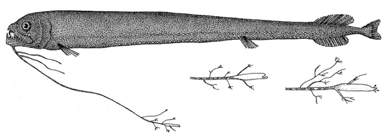 | Alargado y muy delgado, con un hocico corto, romo, no protrusible Barbillón largo con uno o dos filamentos en el tallo y uno o varios filamentos en el bulbo. La premaxila tiene siete u ocho dientes. La mandíbula inferior tiene de cinco a ocho dientes. La aleta pectoral consta de 11 radios no ramificados de igual longitud. La aleta dorsal tiene de 19 a 22 radios y la aleta anal tiene de 23 a 29 radios. La aleta pélvica tiene 7 radios. Fotóforos: IP: 10, PV: 39 a 44 VAV 20 a 22, con las últimas 4 ubicadas sobre la base de la aleta anal. OV: 39 a 42, VAL:20 a 22 AC: 13. Los órganos luminosos preorbitarios y suborbitarios están ausentes. Po es pequeño y redondeado. El color es negro |