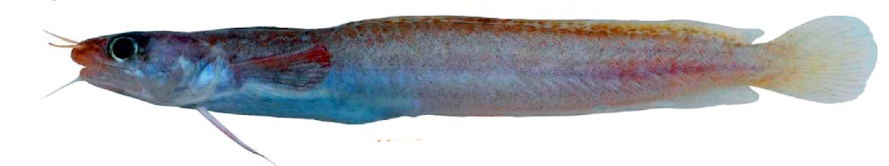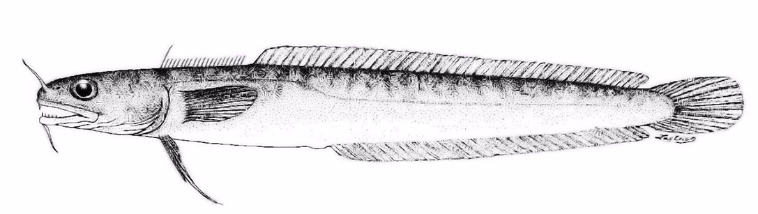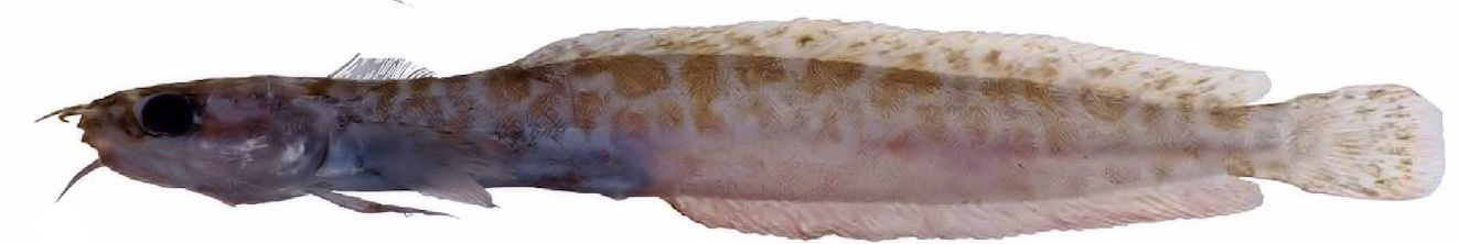 | Ojo relativamente grande, más de la mitad de la longitud del hocico. Primera espina dorsal seguida de unos pequeños filamentos carnosos Una barbilla en la mandíbula inferior y dos en el hocico. Mandíbula superior con dos (raramente 3-4) dientes largos y puntiagudos en la parte delantera |