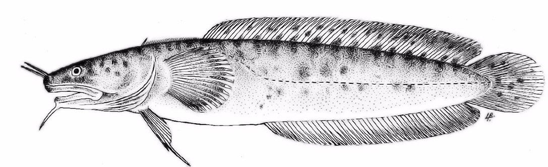 Cuerpo alargado, cabeza estrecha, sección redondeada. Tres barbos, uno debajo de la barbilla y los otros sobre el borde delantero de cada fosa nasal; boca ancha hasta detrás del borde posterior del ojo; mandíbula superior con pequeños dientes afilados, dispuestos en bandas, los de la hilera exterior más grandes. No hay grandes dientes caninos en la parte delantera de la mandíbula superior