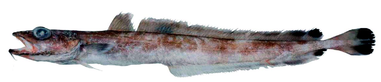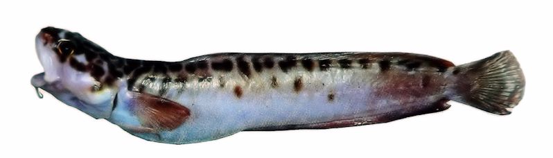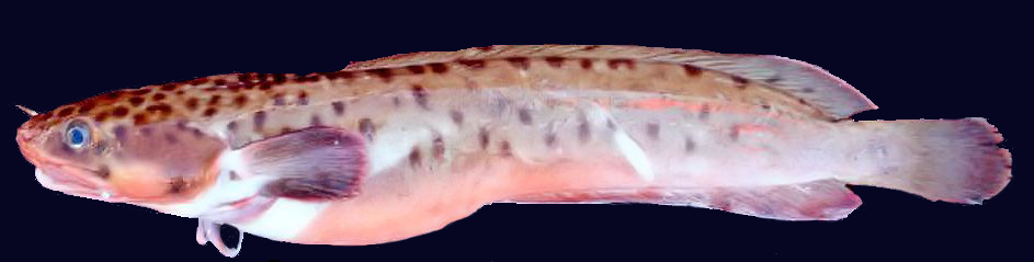 Coloración: espalda y los lados superiores de color marrón oscuro, a veces rojizo, más o menos moteado y manchado de claro; vientre marrón crema claro; dorsal y anal bordeada de oscuro.