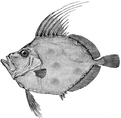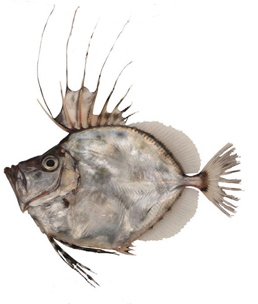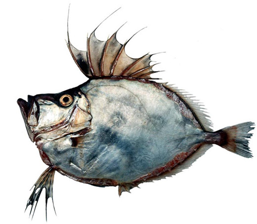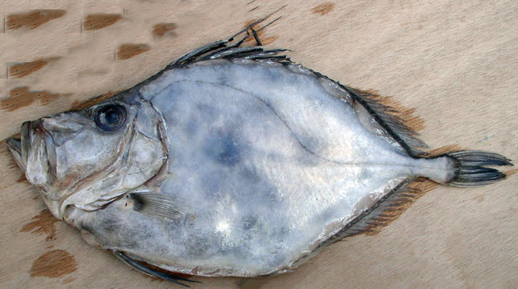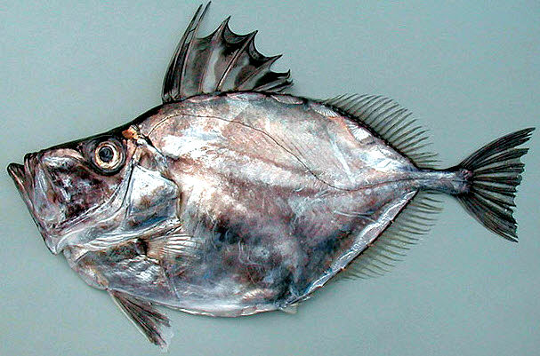 | Pez con el cuerpo ovalado y comprimido lateralmente, de hasta 80 cm. de longitud La cabeza posee un perfil cóncavo en la parte dorsal. La línea lateral, muy marcada con forma de "S". Aleta dorsal 9-10 espinas (largas y flexibles), 24-30 radios blandos; aleta anal con 3 espinas, 24-30 radios blandos, poseen un mecanismo de cierre entre las dos primeras espinas; aletas pectorales 12-14 radios blandos, mucho más cortas que la cabeza o que las aletas pélvicas; pélvicas con 1-5 espinas, se origina antes del origen de la pectoral; aleta caudal redondeada; escamas ausentes; una serie de escudos espinosos grandes a lo largo de las bases de las aletas dorsal y anal; 2 filas de 6-7 escudetes quillados entre las aletas pélvicas hasta el ano; 2 escudos antes de las pélvicas. El color es gris plata con manchas oscuras difusas en los flancos. |