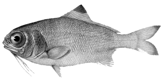 | Cuerpo moderadamente alargado y comprimido; con un par de barbillas hioides Boca subterminal. Cabeza escamosa, excepto el preopérculo. Ojos grandes. Hocico corto, redondeado, sobresaliendo por encima de la mandíbula superior Aleta dorsal continua, con 4-6 espinas y 26-38 radios blandos; aleta anal con cuatro espinas cortas y 13-17 radios blandos; aletas pélvicas subabdominales, con un radio en forma de espina y seis radios suaves; 16 radios caudales ramificados y cuatro espìnasa cortas. Aletas pélvicas subabdominales, con un radio en forma de espina y seis radios suaves 33–38 escamas en la línea lateral Cuerpo grisáceo a verdoso, más oscuro en la cabeza; lóbulos dorsal y anal y cola con el borde negro |