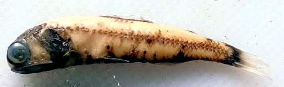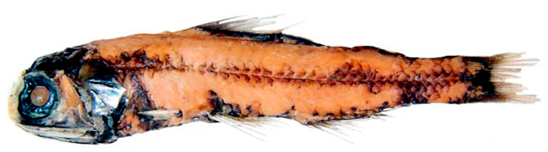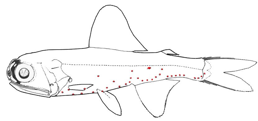 | Aleta dorsal 16 (15, raramente 17); radios aleta anal 15 (raramente 14 o 16); radios aletas pectorales 12 (11, raramente 13). Branquiespinas : 6 (raramente 7) + 1 + 13 (12), total 20 (19-21) Fotóforos: AO 6 (rara vez 5 o 7) + 5 (rara vez 4 o 6), total 11 (rara vez 10 o 12). |