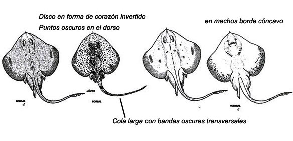 Parte superior completamente y densamente cubierto de dentículos dérmicos finos; inferior liso, a excepción de estrechas bandas marginales de espinas en la cola