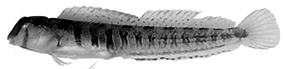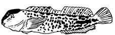 | Dorsal con una escotadura. Coloración variable, marrón claro y gris azulado, con manchas rojizas en mejillas y líneas sinuosas más claras en los flancos |