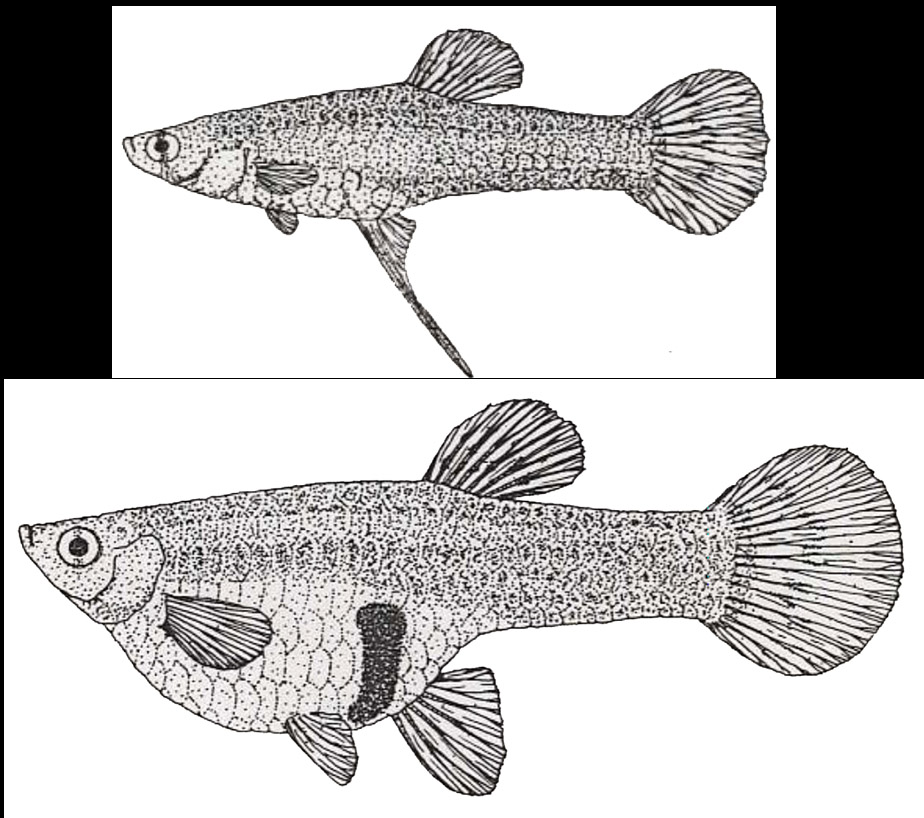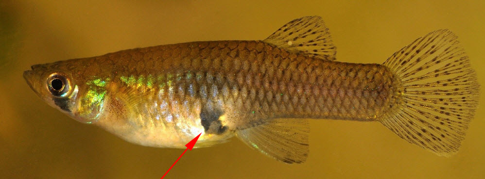 Muy similar a Gambusia holbrooki de la que se difrencia en que su aleta dorsal tiene ocho o nueve radios. Primer radio duro