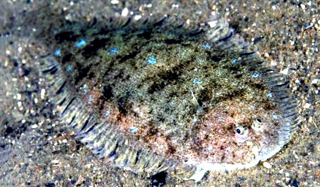 Cuerpo oval, alargado Ambos ojos en el lado derecho Fosa nasal anterior en el lado de ojos con un tubo que apunta hacia atrás, llegando a la vertical que pasa por delante de margen inferior del ojo.; fosa nasal del lado ciego no alargada Hocico redondeado. Boca pequeña, inferior; preopérculo con el borde posterior oculto debajo de la piel. Aleta dorsal con 65-78 radios delante del borde anterior del ojo superior. Anal con 49-63 radios; Pectoral de la cara oculada con 3-5 radios, la del lado ciego reducida a un radio largo y 2 muy cortos. Base de la caudal, unida a la dorsal y anal por una membrana pequeña. 55-70 escamas en la línea lateral, que es recta Escamas ctenoideas Color: amarillo marrón (o arena) en el lado ocular, con manchas o puntos de color marrón o gris. Mucosa de la cavidad bucal y branquias claras Habitualmente bandas verticales anchas y oscuras, las 4 o 5 principales marcando la dorsal y la anal, la última sobre el pedúnculo caudal Aleta pectoral pardo oscuro o negruzca en la base y rojiza en el extremo