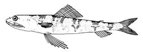 | Base de la aleta anal corta Con tres hileras de escamas entre la línea lateral y la base de la dorsal Con 8-10 bandas oscuras transversales subrectangulares que no llegan a la región ventral |