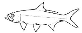 Los únicos elopiformes con el cráneo en contacto con la vejiga natatoria (pero sin una asociación íntima) entre la vejiga natatoria y la cavidad perilinfática |
