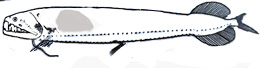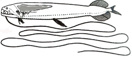 | Con una línea luminosa alargada originada a nivel de las aletas pectorales, su borde posterior alcanza el nivel de las aletas pelvianas | ![]() |