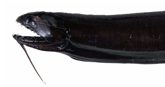 | Cuerpo esbelto, moderadamente comprimido. Cabeza con hocico inclinado moderadamente largo ; mandíbula inferior no más larga que mandíbula superior , no muy curvada hacia arriba Barbillón más corto que la longitud de la cabeza , punta con un bulbo pequeño, esférico u ovoide que lleva un filamento distal . Radios dorsales : 17-20; Radios anales : 16 - 19.Aleta pectoral con 3-7 radios, todos aproximadamente de igual longitud , a veces con un pequeño bulto de material luminoso cerca de la base del primer radio ; aletas pélvicas bajas en el cuerpo, sus inserciones muy juntas cerca de la línea ventral media ; bases de las aletas dorsal y anal aproximadamente iguales, sus orígenes aproximadamente opuestos; sin aleta adiposa dorsal . Fotóforos en la fila ventral entre las inserciones de las aletas pectoral y pélvica (PV) 21-26; post- orbital luminoso más pequeño que el diámetro del ojo, esférico o de forma ovoide. Material luminoso por encima y por detrás post- orbital en el costado de la cabeza , incluyendo grandes parches o rayas que se extienden hacia la parte posterior de la cabeza . Color: cabeza y cuerpo negros; a menudo una o dos líneas pálidas en los flancos, que se extienden hasta entre las bases de la aleta dorsal y anal |