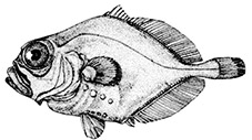 | Dos hileras de tuberculos en la región ventral Primera espina de la aleta dorsal más corta que la segunda. Radios de la aleta dorsal y anal sin espinas |