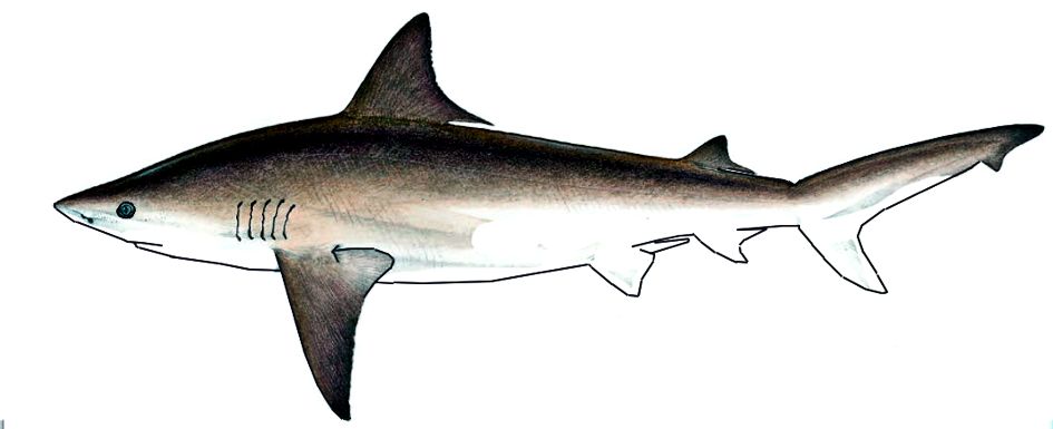 Color: gris claro por encima, a veces bronceado, blanco abajo, con puntas oscuras en las aletas (a excepción de las aletas pélvicas), pero sin marcas visibles. Vivíparo placentario